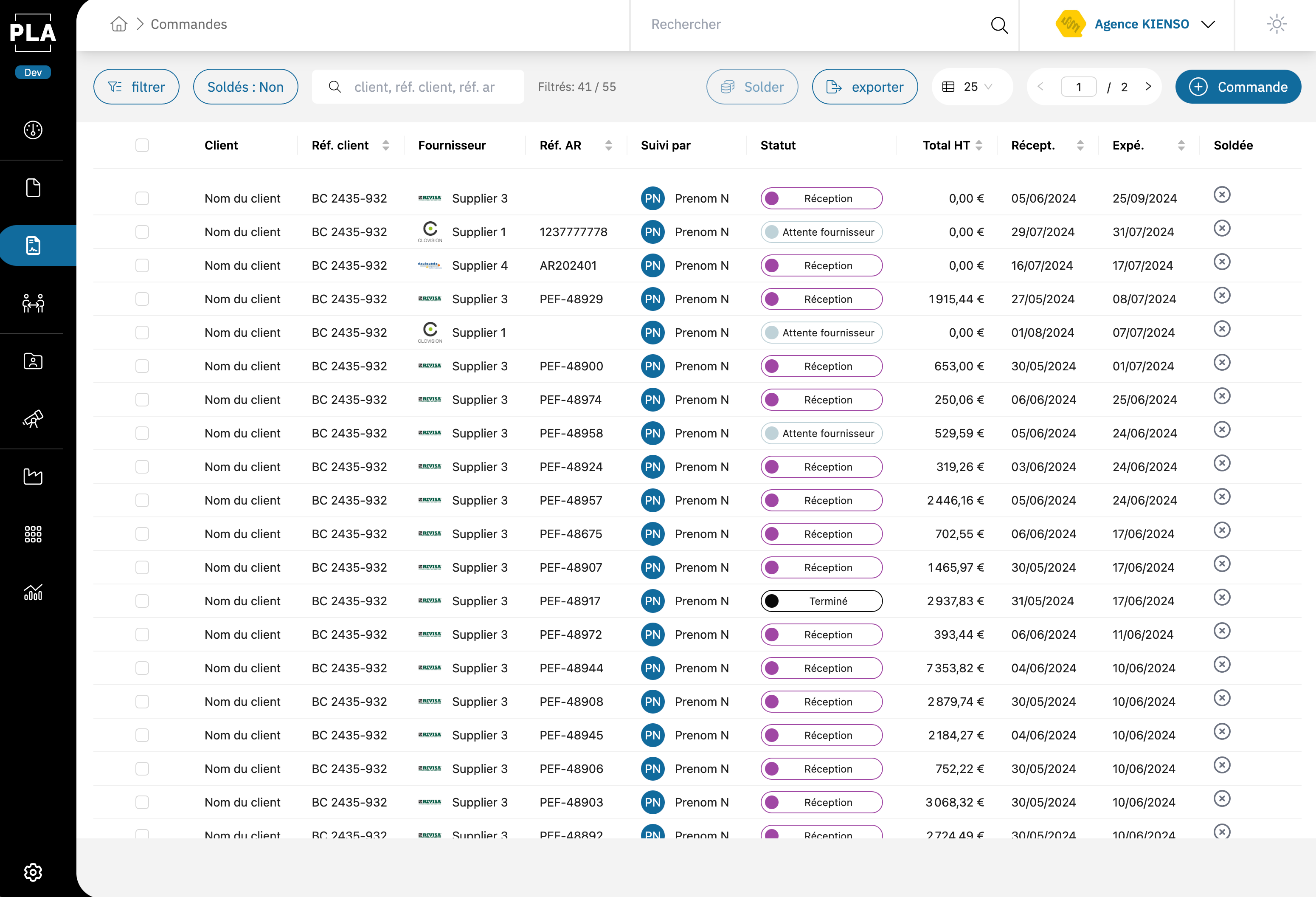 Elle souhaite s’équiper un logiciel métier accessible en ligne depuis n’importe où. Il doit être rapide et évolutif. Il doit répondre aux standards d’ergonomies auxquels sont maintenant habituer les utilisateurs. Le logiciel doit digitaliser le processus de commande et le simplifier au maximum.